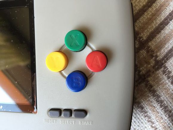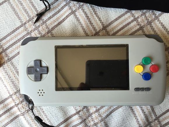 这是一款超级大个,超级厚的,砖头级别的SFC掌机,哈哈哈。屏幕巨大。