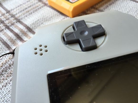 主机正面,屏幕是宽屏的。。。左侧喇叭,右侧4色按键和开关符文