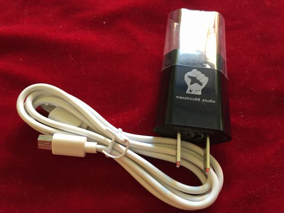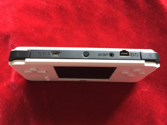 我们首先来看一下整机,很硬朗的而且是磨砂的外盒包装,左上角还有周哥那个标志性的拳头LOGO。白色掌机一部,K卡(烧录卡)一张,AV线一根(接电视后玩GBA的效果非常棒),5V 1A充电器一枚,高质量白色USB数据线。