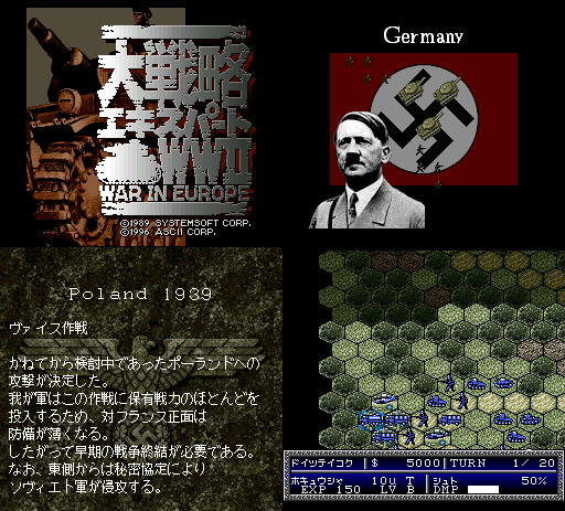 21# Daisenryaku Expert WW2 - War in Europe 大战略专业版——二战之欧陆战线 制作:ASCII Entertainment 发售:1996.8.30 容量:16M SFC后期推出的“大战略”游戏,以二战时的欧洲战场为背景。