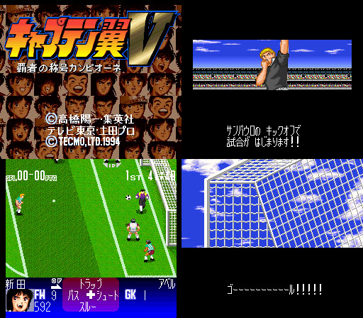 25# Captain Tsubasa V 天使之翼5 制作:Tecmo 发售:1994.12.9 容量:16M 画面有了很大提高,但风格再次变化,取消了近景画面显示,感觉更像是一款动作足球游戏。剧情上继续承接前代往后发展。