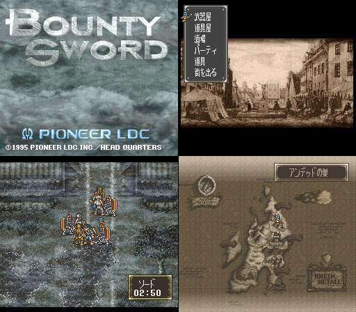 27# Bounty Sword 赏金之剑 制作:Pioneer LDC 发售:1995.9.8 容量:24M 具有即时要素的战棋游戏。游戏的战斗以任务模式的方式展开,可以收取大量的同伴加入战斗。战斗时,采用类似即时战略的战斗方式,不过反应速度比较慢(其实如果反应速度很快的话,在SFC上玩恐怕就控制不过来了!),战斗遇到情况必须及时调整队员的行动。
