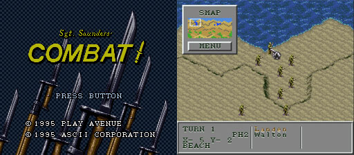 30# Sgt. Saunders' Combat! 制作:ASCII Entertainment 发售:1995.9.29 容量:12M 以二战为题材的战略游戏,很有亲临战场的感觉,己方每人走一步前都需要仔细侦查附近有没有敌人攻击,以免为此而牺牲。